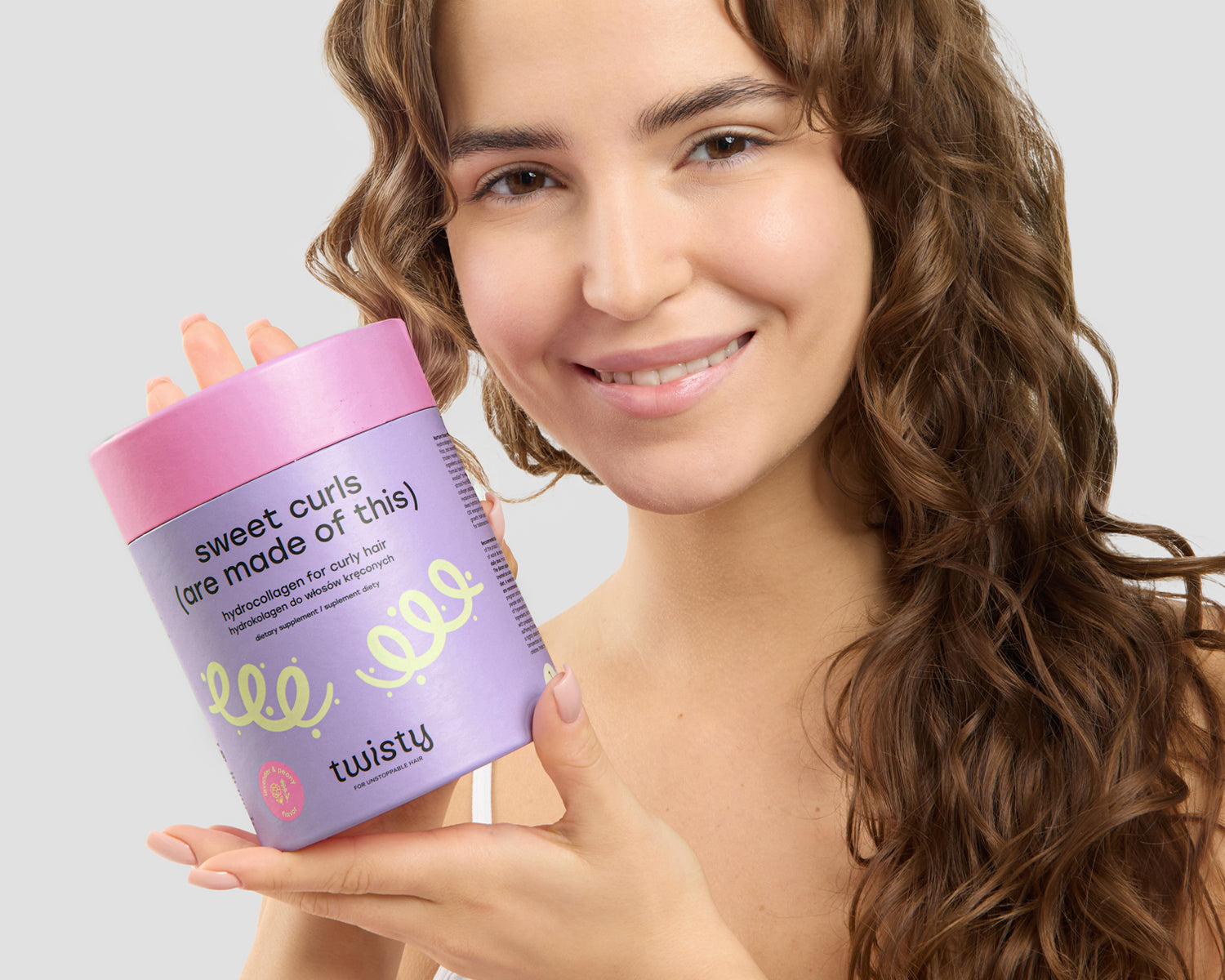 Hydrokolagen Twisty on markkinoiden ensimmäinen kollageeni, joka on suunniteltu erityisesti kiharille hiuksille ja tukee kosteutusta sisältäpäin. Sen koostumus yhdistää hydrolysoidun Naticol®-kollageenin, joka vahvistaa hiuksen rakennetta, biotiiniin, sinkkiin ja koentsyymi Q10:een, jotka tukevat hiustuppien normaalia toimintaa ja tervettä hiustenkasvua. AnaGain™-kompleksi (uutteena itäneistä herneensiemenistä), jonka teho on tutkimuksin vahvistettu, auttaa vähentämään hiustenlähtöä, kun taas hyaluronihappo ja C-vitamiini tukevat optimaalisen kosteustason ylläpitämistä. Hydrokolagen vastaa kuivien, hauraitten, heikentyneiden tai kosteutusta kaipaavien hiusten tarpeisiin. Säännöllinen käyttö tukee hiuksia sisältäpäin, parantaa niiden elastisuutta ja voi edistää aaltoilevien ja kiharoiden hiusten parempaa kiharanmuodostusta.